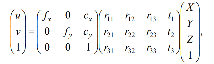 2차원 이미지 상의 좌표를 실제 3차원 공간 상의 좌표로 변환하는 과정, 위 식을 통해 PRGB(x), PRGB(y) 를 구할 수 있다.