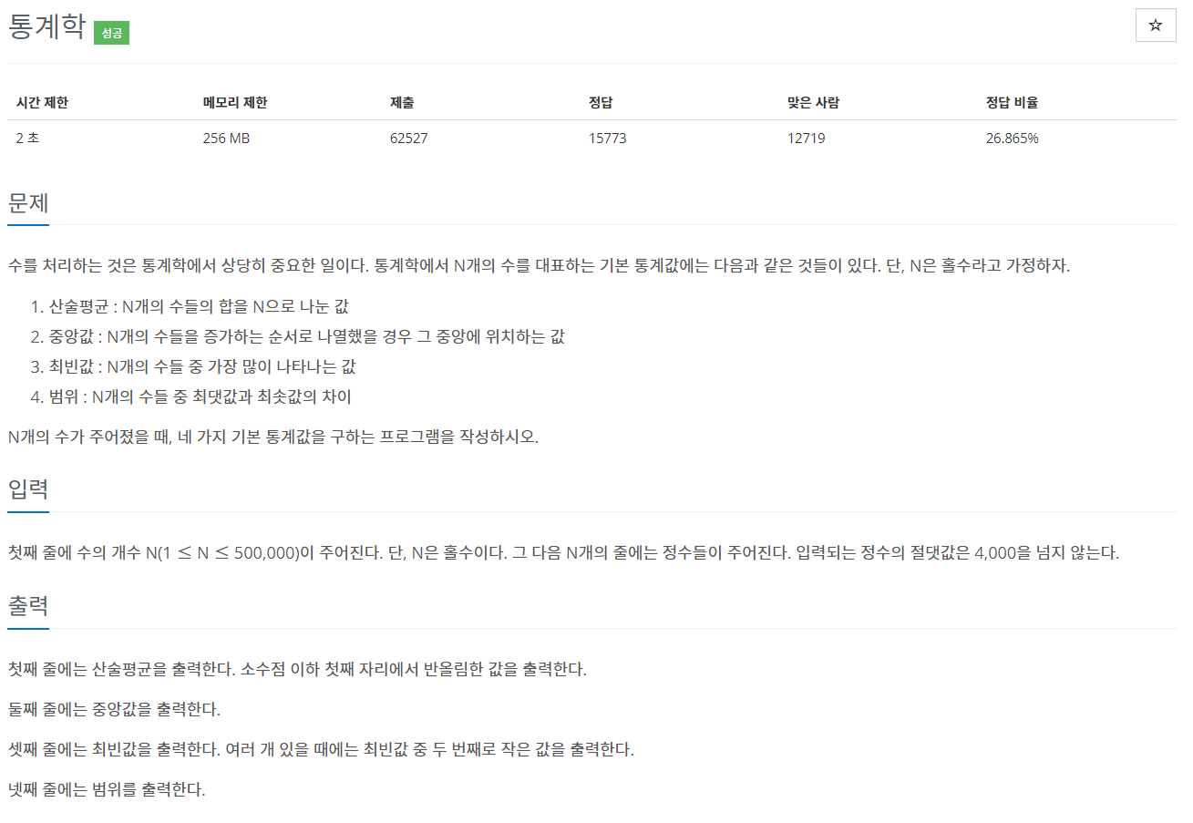 2108번: 통계학