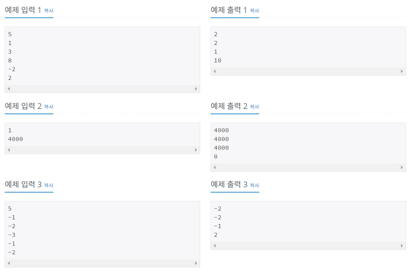 첫째 줄에 수의 개수 N(1 ≤ N ≤ 500,000)이 주어진다. 단, N은 홀수이다. 그 다음 N개의 줄에는 정수들이 주어진다. 입력되는 정수의 절댓값은 4,000을 넘지 않는다.